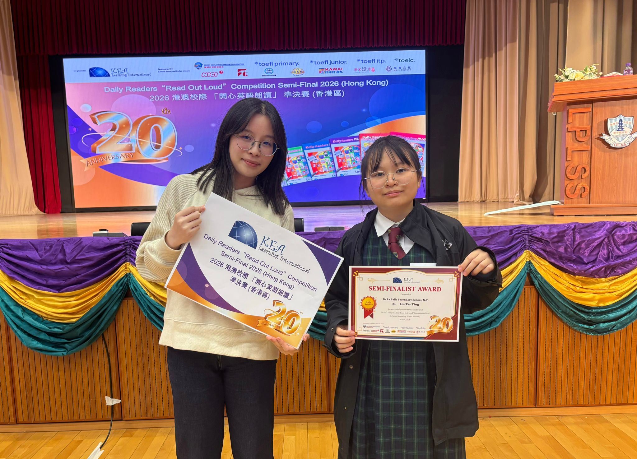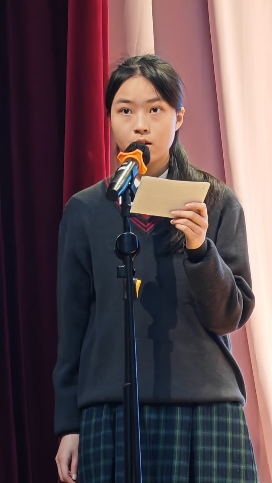 Notably, one student has been shortlisted for the semi-finals. Among thousands of entrants across Hong Kong, only 35 students were selected as semi-finalists. 2L Liu Tsz Ting was among them — she gave an excellent performance, using expressive body language to bring the text to life. Best of luck to her!