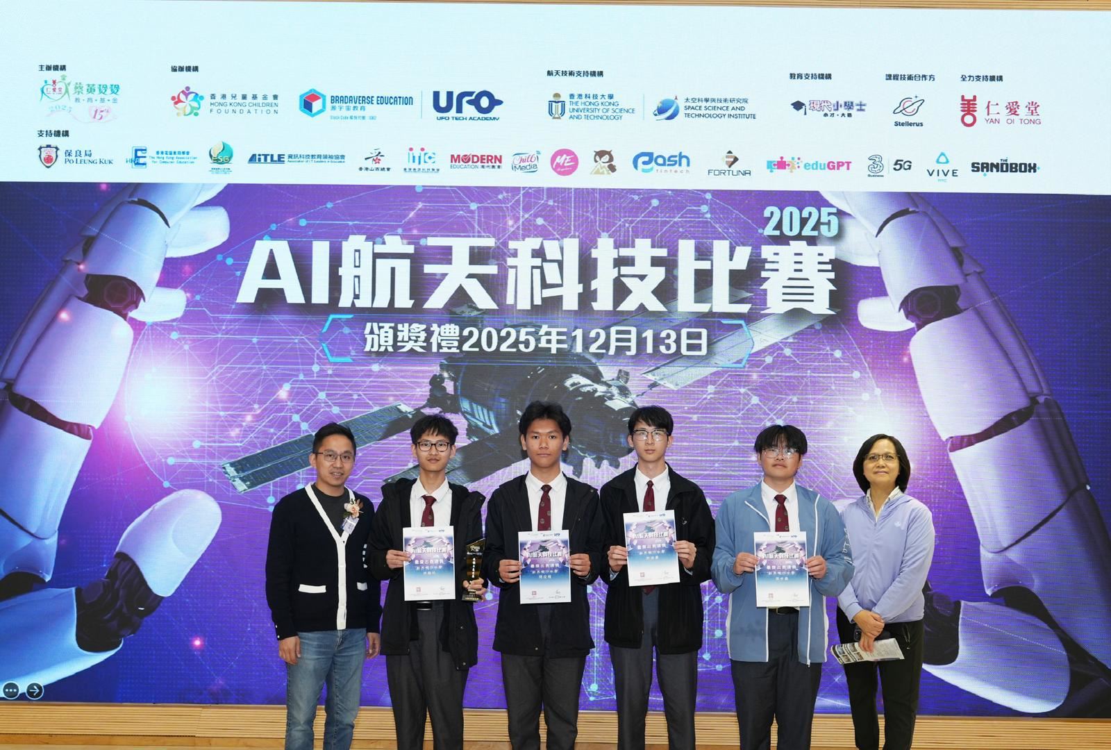 2025年9 - 11月期間,本校參加由仁愛堂蔡黃玲玲教育基金主辦、香港兒童基金會、源宇宙教育機構協辦的「AI 航天科技比賽2025」,並成功奪得獎項。