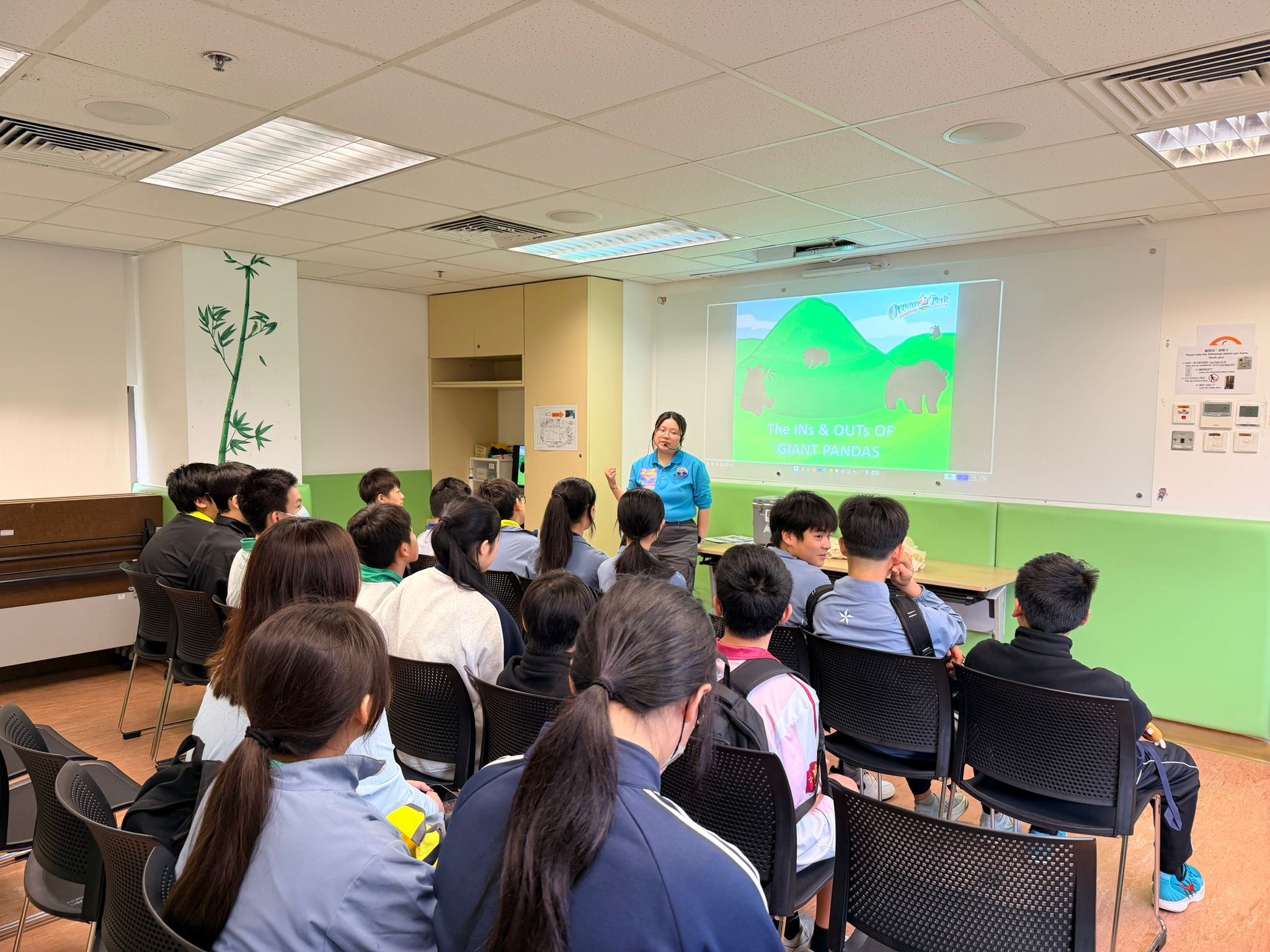 Seventeen of our S1 students recently took part in the Ocean Park Nature Experience Programme, where they explored the fascinating world of the Giant Panda through English. During the programme, students learned about various aspects of pandas — from their biological structure (such as skull shape, types of pandas, and even panda droppings) to their living habits and behaviour. The workshop provided a unique opportunity for students to learn English in an authentic, hands‑on, and interactive environment. Our students were highly engaged throughout the session and made great efforts to express their thoughts and complete the tasks proactively in English. Below are some reflections from the participants: 1S Long Qi Luo “Looking up at the sea of Hong Kong from the mountain at Ocean Park, I felt amazed. In the panda pavilion, I was so excited to see those cute and rare pandas. I learned about their digestive system and discovered that pandas find it difficult to digest bamboo and absorb few nutrients. I also learned that pandas have only one stomach, are vegetarian, and live alone.” 1S Li Yu Hong “Gazing at the blue sea and sky from the cable car, I was impressed by the cute and clumsy pandas. The roller coaster was thrilling and exciting! I truly enjoyed the happy moments and understood more about the feeding habits, reproduction, and habitats of different marine animals.” Teacher-in-charge: Ms Alice Wu Accompanying Teacher: Ms Victoria Chan